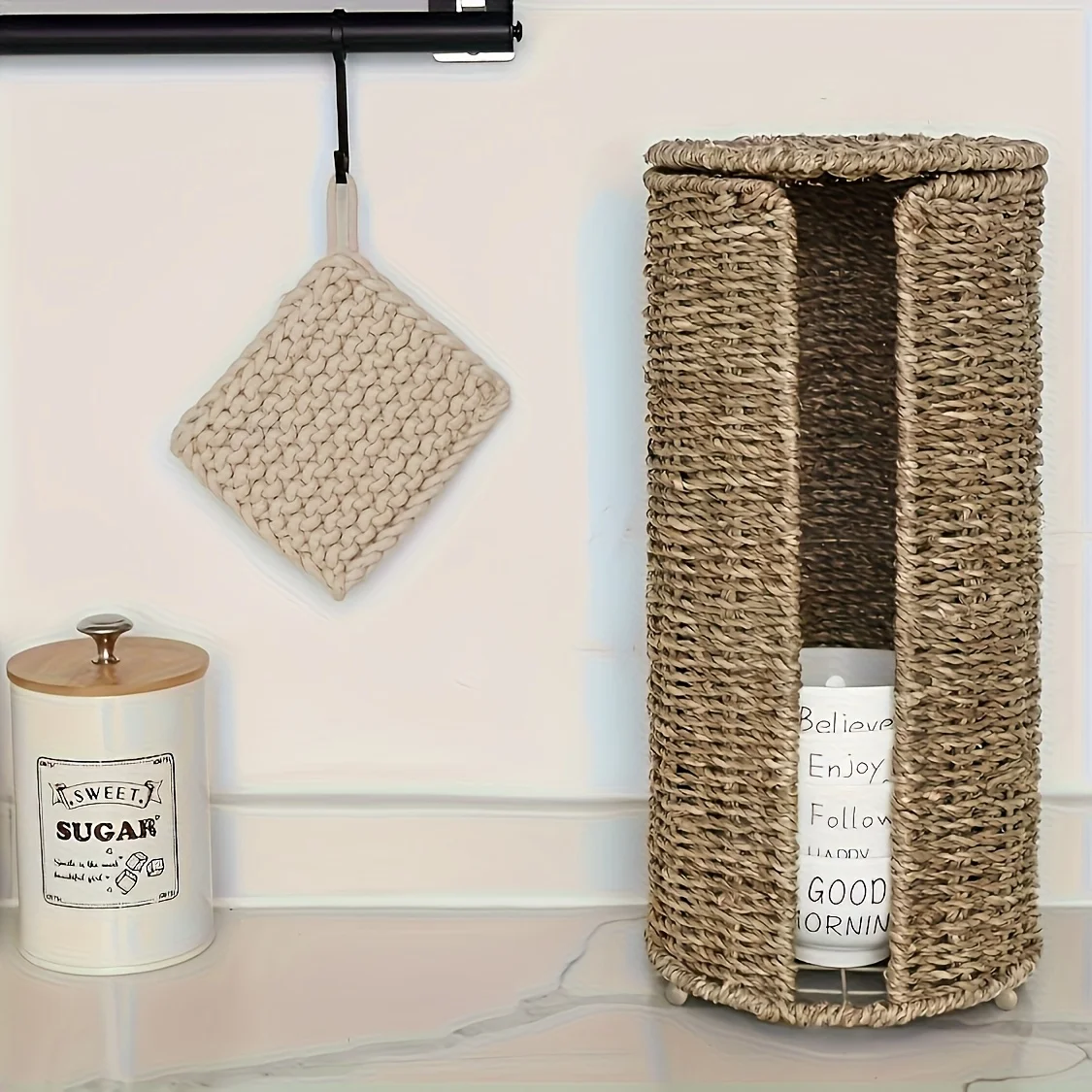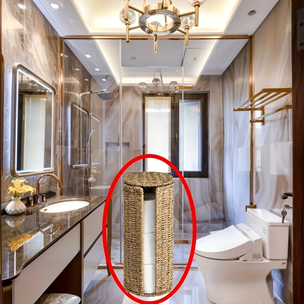 حامل ورق تواليت من الخيزران الحديدي المنسوج على الطراز القديم